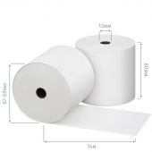 Чековая лента из термобумаги 80 мм (диаметр 67-69 мм, намотка 74 м, втулка 12 мм, 8 штук в упаковке)